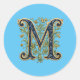 M monogramm-blaugoldene Blume Runder Aufkleber