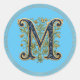 M monogramm-blaugoldene Blume Runder Aufkleber