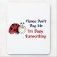 Korrigierter Marienkäferentwurf für medizinische Transcriptionists. Text sagt: "Bitte hören Sie mich nicht ab,…, das ich bemüht bin zu übertragen!" Wunderliche Weise, andere benötigen uns kennen zu lassen Frieden und Ruhe, während wir arbeiten!