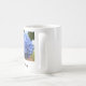tasse de café exclusive avec cette belle fleur bleue tropicale d'hortensia.