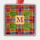 MAC RAE TARTAN Glas Square Ornament + Initial Aus Metall