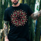 Horror haben ein rosa und grünes Shirt, das eine kaleidoskopische Abbildung im Horror-Zirkus-Stil mit Augen und Hörnern darstellt.