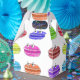 Ein Muster aus niedlichem Macaron-Cartoon auf einem Greifkasten. Küche, Konditorei und Supermarkt Dekor Idee. Originelles Design.