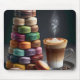 Farbiger Makaronstapel mit Latte und Dampf abgeschieden auf schwarzem Hintergrund