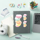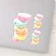 Köstliche Aufkleber zur Illustration eines zart ausgeglichenen Turms aus rosa, grün, orange, braun und gelben Makaronen. Eine französische Spezialität und perfekt für jeden, der süße Sachen Liebe. Kleben Sie sie auf Ihre Rezept- oder Essensbücher, Kugel-Tagebuch, Handy oder Laptop oder alles andere, was Sie denken können!