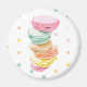 Illustration d'une tour délicatement équilibrée de macarons rose, vert, orange, marron et jaune. Une spécialité française et une carte ou un cadeau délicieux pour un ami spécial ou qui aime les sucreries.