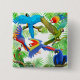 Originalvorlage durch Designer Carolyn McFann der bunten Macawpapageien von Hyazinthe, Blau u. Gold- und Hybridmacaws zu Militär und Scharlachrot auf Qualitätsgeschenken, Porto und Karten.