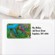 Originelles Kunstdesign von bunten Macaw Papageien in einem zentralamerikanischen Dschungel von Designerin Carolyn McFann auf anpassbaren Etiketten für Papageienliebhaber.