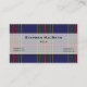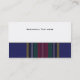 Stilvolle karierte Visitenkarte im traditionellen, farbenfrohen MacBeth-Tartan-Muster. Auf der Vorderseite der Karte befindet sich ein schwarzes, halbdurchsichtiges weißes Band mit schwarzem Rand, das in der Mitte der Karte sichtbar ist. Die Rückseite der Karte ist weiß, der Streifen kariert am unteren Ende und der schwarze Text am weißen Teil. Personalisieren Sie den gesamten Text, um Ihre Bedürfnisse zu Anzug. Schöne und beruflich aussehende Visitenkarte.
