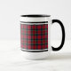 Kaffee-Tasse mit dem Tartan für Clan MacDuff und seine Stücke, einschließlich Abernethy und Lange. Kirschrot, grün und blau Schottisches kariertes Muster aus dem Jahr 1816, mit schwarzen Akzenten.
