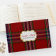 Livre d'hôtes mariage coloré réalisé dans le classique clan écossais rouge MacFarlane tartan plaid motif. Une zone de texte décoratif, sur la façade du livre, a un texte personnalisé prêt à être personnalisé. Des produits mariages correspondants sont disponibles.