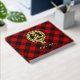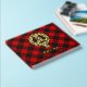 Clan Gregor oder MacGregor Wappen Abzeichen umgeben von einem Gurt und Schnalle über Rob Roy Tartan Hintergrund. Benutzerdefinierter Vorder-, Rücken- und Rückentext.