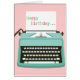 Machine à écrire avec le joyeux anniversaire de note dans le bleu et le rose