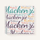 Mackenzie. Zeigen und tragen Sie diesen beliebten schönen weiblichen Vornamen, der als bunte Wortwolke aus waagerechten und senkrechten, kursiven Handschrift-Typografie in verschiedenen Größen und bezaubernden frischen Farben entworfen wurde. Tragen Sie Ihren positiven amerikanischen Namen oder zeigen Sie der Welt, wen Sie Liebe oder Verehrung. Merch mit diesem weichen Text Kunstwerk ist ein großartiges Geschenk, nicht nur in der Geschichte der Frauen Monat, oder Geburtstag Geschenk.