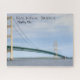 Die Mackinac Bridge MI ist 8 km lang und 150 Meter über dem Wasser. Der Spitzname ist der mächtige Mac. Es ist die längste Hängebrücke in Michigan und die fünftlängste Hängebrücke der Welt. Das erste Mal, wenn Sie bis in den Oberen Michigan oder hinunter nach Nord-Michigan reisen, ist es eine Reise, die Sie nie vergessen werden. Diese Ansicht wurde von der Fähre von Mackinaw während der Fahrt unter der Brücke aufgenommen.