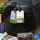 Gepäckmarke mit einem Foto des alten Leuchtturms von Mackinac Point und der Mackinac-Brücke in Michigan, Vereinigte Staaten. Suchen Sie weitere Drucke oder Produkte? Fühlen Sie sich frei, um meinen Laden zu besuchen: http://www.zazzle.com/timelessmomentsphtgy Dieses Foto wurde von Jennifer White mit Timeless Moments Fotografy aufgenommen. Alle Bilder sind urheberrechtlich geschützt © Timeless Moments Fotografy.