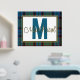 Ein hübscher, karierter Foliendruck mit einer im Textbereich gerahmten Goldfolie vor dem Hintergrund des schottischen MacNicol Jagdtartan-Musters. Ein großer bundesstaatlicher blauer Single Buchstaben Monogramm und Goldfolienname sind fertig, um zu personalisieren.