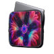 Fuel your creativity with energetic art. The Radiant Riot laptop sleeve bursts with vibrant magenta and blue stamens and paint-splatter petals in pink, purple, and cyan. A dynamic, padded case that turns your laptop into a mobile canvas