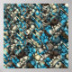Enjoy this abstract digital artwork featuring a collection of chaotic shapes with hues of blue, beige and brown.