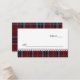 Sehr schöne karierte Hochzeitsempfang Platzkarte / Begleitkarte, in Weiß gemacht, mit einer Band aus blau, rot und schwarz Klan MacTavish Tartan kariert, am unteren Ende. Die Grafiken einer dekorativen Kalottenkante und eines roten Stickerahmens schmücken den Textbereich. Die passenden Hochzeitsprodukte sind erhältlich.