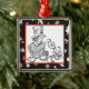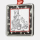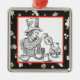 Viereckiges Premium-Ornament mit einem Vintagen Alice im Wunderland-Bild des Mad Hatter, das Dormaus auf schwarz-weißem Wonderland-Hintergrund Tee serviert. Sehen Sie sich die gesamte Kollektion Wonderland Ornament in den SPEZIALEN TOUCHS an. | Abschnitt Gastgeschenke.