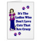 Cette conception de Madame de chat (non fou) prend une position contre le stéréotype des propriétaires compatissants de chat de femmes comme isolé ou excentrique. Après tout, c'est les personnes en ce monde qui ne s'inquiètent pas des animaux qui sont les vrais inadaptés. En d'autres termes, "c'est les dames qui n'aiment pas les chats qui sont fous."
