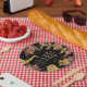 Diese Teller zum Thema "Wild One" Dschungelsafari-Girl's erster Geburtstagsfeier mit Goldfolien (Giraffe, Löwen und Affen), Gold und Rosa Dschungelfolien und einer Sprinklerei Goldkonfetti auf schwarzem Hintergrund. Fügen Sie den Namen des Geburtstagsmädchens und anderen Text in Gold und Weiß hinzu.
