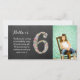 Rustikaler Landstil, moderne und trendige Blumennummer 6 / sechs mädchenhafte Design mit einem schönen Chalkboard/Tafel Hintergrund. Fügen Sie Ihr eigenes Foto Ihrer 6-jährigen Tochter hinzu, um dies zu einem personalisierten Dankeschön zu machen. Die Rückseite der Hochglanzkarten ist leer, was Ihnen viel Platz verlasse, um eine kurze Nachricht zu schreiben, wenn Sie möchten. Jede Fotokarte wird mit einem passenden weißen Umschlag geliefert, der im Preis inbegriffen ist. Die fabelhafte Beispielfotografie, die in dieser Vorlage verwendet wird, ist dank der talentierten Fotografin Carrie Keller Bitting von der Woven Nest Fotografy Pty Ltd - North Carolina, USA.