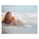 Schöne Frau in einem weißen Abend in einer Strandwelle