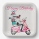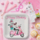 Mädchen auf einem Scooter mit Geschenken Pappteller
