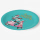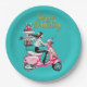 Mädchen auf Scooter, die Präsentationen tragen Pappteller