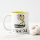 Ein Mädchen-Strichmännchen, das kundengerechte Tasse des Fitnessthemas ausarbeitet.