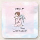Senden Sie Erste Kommunion Grüße und Wünsche an ein spezielles Mädchen. Das perfekte Geschenk, Souvenir und Geschenk, das ein Mädchen Engel auf dem Design darstellen.