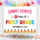 Machen Sie sich bereit, diese wertvollen "ersten Schultag"-Momente mit unserem lebendigen und spielerischen Poster der ersten Klasse zu erleben! Mit einem bunten, fröhlichen Design mit Stiften, ist dieses Zeichen des "ersten Tages" perfekt, um den ersten großen Tag der ersten Klasse Ihres Kleinen zu feiern. 📚 ✏️ Um dieses Design noch weiter anzupassen, wählen Sie einfach die Schaltfläche "Anpassen" oben!