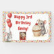Ein personalisiertes Geburtstagsbanner für Mädchen mit einer süßen Maus und einem Cupcake-Thema. Rosa, beige und kirschrote Streusel auf einem niedlichen Vanille-Cupcake, der von einer Wasserfarben-Maus gehalten wird! Fügen Sie das Bild Ihrer Tochter im personalisierten Bereich hinzu!