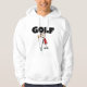 Ein Golf spielender Entwurf des niedlichen Strichmännchenmädchens, der "GOLF" auf Golf spielenden T - Shirts, Tassen, Karten, Hoodies, Aufklebern, Porto und anderen Golfkleider- und -geschenkeinzelteilen liest.
