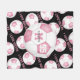 Diese sportliche Fußball-Decke mit einer großen, klassischen Fußballkugel mit rosa-weißen Platten, auf denen ihr Name, Monogramm und Trikot personalisiert werden können, überragt ein Muster aus kleineren rosa-weißen Fußbällen und dem sportlichen Schriftart "I LIEBE SOCCER", der sich zwischen den verworrenen Reihen von Fußballbällen erstreckt - der Hintergrund ist in Schwarz anpassbar - die rosa Tafeln haben eine digitale erzeugte Textur - von katz_d_zynes