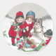 Mädchen in den roten Mänteln mit Puppen Runder Aufkleber