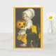 Dieses Karten-Thema ist ein Teil der Vintagen Halloween-Sammlung. Ein Mädchen, eine schwarze Katze und ein Halloween-Kürbis werden gekennzeichnet.