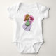 Niedliches, launisches Mädchen mit langen, fließenden, gelben Haaren und einem grünen Kleid und gestreiften Strümpfen. Sie hält einen schönen Strauß roter Rosen in ihren ausgestreckten Armen. Der Hintergrund besteht aus einem rosa und violetten Liebesherz.