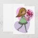 Süße Mini-Kunst einer fantasievollen Mädchenfigur mit langem, fließendem gelben Haar und einem grünen Kleid und gestreiften Strümpfen. Sie hält einen wunderschönen Strauß roter Rosen in ihren ausgestreckten Händen. Ursprünglich als digitale Kunst geschaffen, ist dies ein entzückendes Kunstwerk, das ideal ist, um es einem Freund oder Geliebten zu schicken und Ihre Wertschätzung zu zeigen.