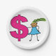 Mädchen mit einem Dollar-Zeichen Pappteller