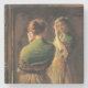 Dieses Design zeigt ein Gemälde des amerikanischen Impressionisten Joseph DeCamp (1858-1923). Es zeigt eine schöne Frau, die sich auf ein großes Ereignis vorbereitet, während sie ihr Spiegelbild betrachtet. Sie trägt ein lang fließendes weißes Kleid und hat einen grünen Schal um ihre Schultern herum. Das Originalwerk wurde 1900 von Joseph DeCamp gemalt.