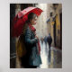 Mädchen mit einem roten Regenschirm auf den Straße Poster
