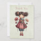 Dankeskarten mit einem süßen Retro-Motiv mit einem verspielten Mädchen mit rosigen Wangen und Blumen im Haar. Trägt eine grüne Froschpuppe.