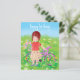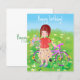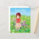 Mädchen mit Fahrrad auf einer blühenden Wiese