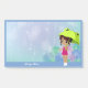 Mädchen mit Frosch Umbrella & Hydrangea Blume Blau Post-it Klebezettel