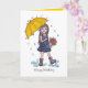 Mädchen mit gelbem Regenschirm in Wasserfarbe Karte