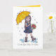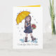 Mädchen mit gelbem Regenschirm in Wasserfarbe Karte