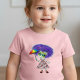 Ein süßes Kleinkind mit einem Regenschirm, das einen hübschen T - Shirt trägt, der sich ideal für Babys eignet, und das Herz überall gefangen nimmt.